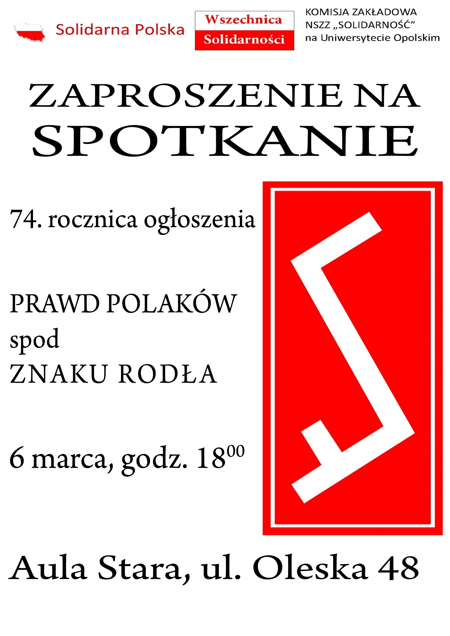Komisja Zakładowa NSZZ „Solidarność” UO oraz Solidarna Polska zapraszają na spotkanie związane z: